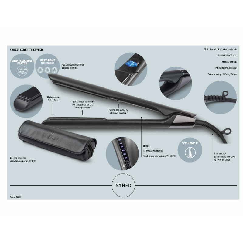 Con la piastra HH Simonsen Serenity Styler avrai a disposizione una piastra con tecnologia di legame ionizzante per una finitura liscia come la seta, senza effetto crespo. Attiva la funzione Bonding e lascia che il generatore di ioni rilasci oltre 1 milione di ioni che riducono l'elettricità statica e lasciano i tuoi capelli morbidi, lisci e facili da acconciare.